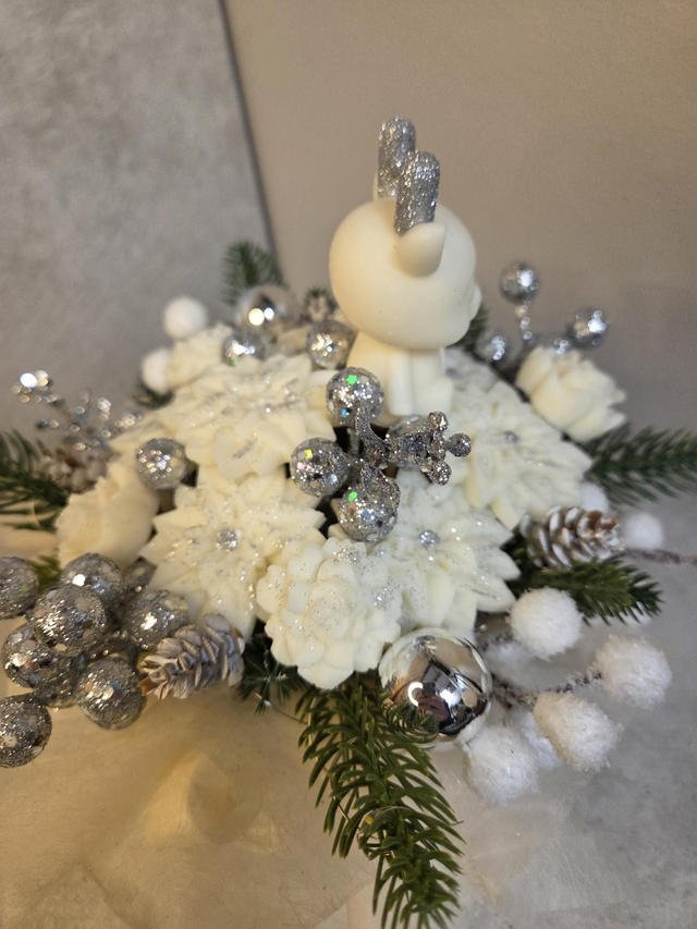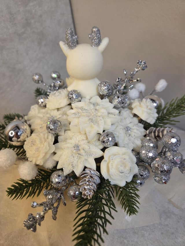 Composition de Noël cerf blanc et argent
