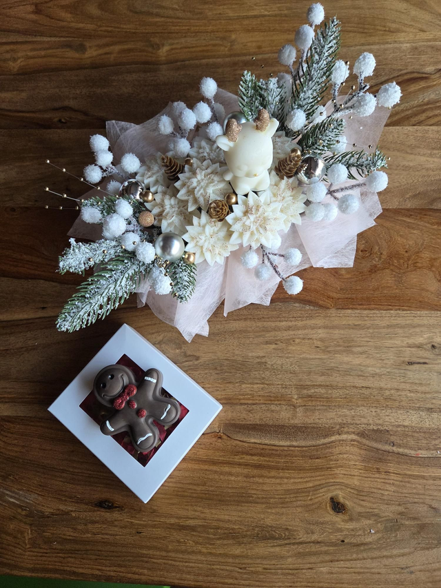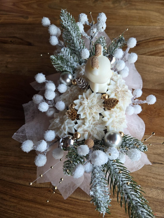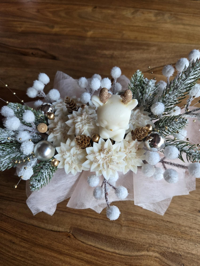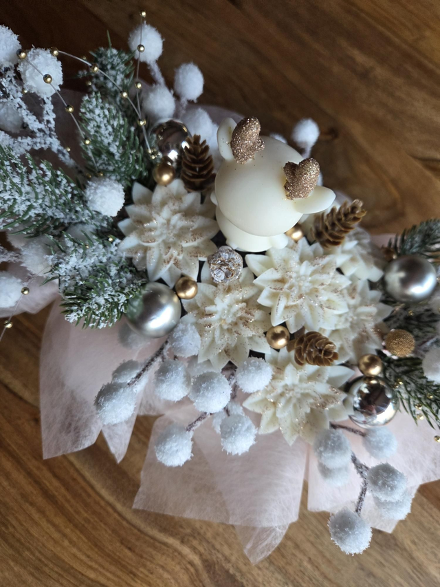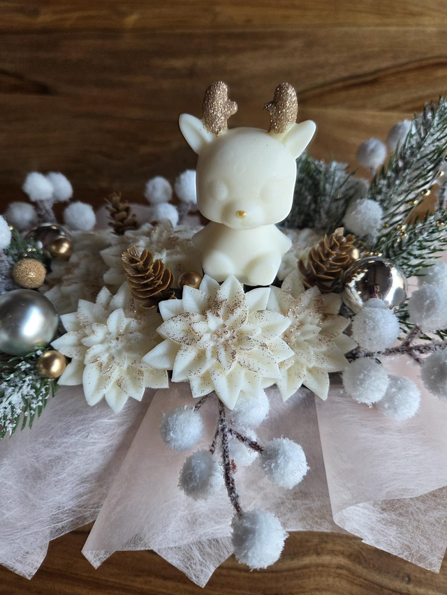 ● Bouquet fondant Fleurs de coton ~ 110g cerf blanc et or