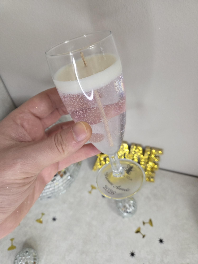 Craquez pour cette bougie raffinée présentée dans une élégante flûte à champagne en verre. Sa cire transparente rose délicat, parsemée de fines touches scintillantes, rappelle l’effervescence d’un champagne et apporte une note chic et festive à votre décoration.