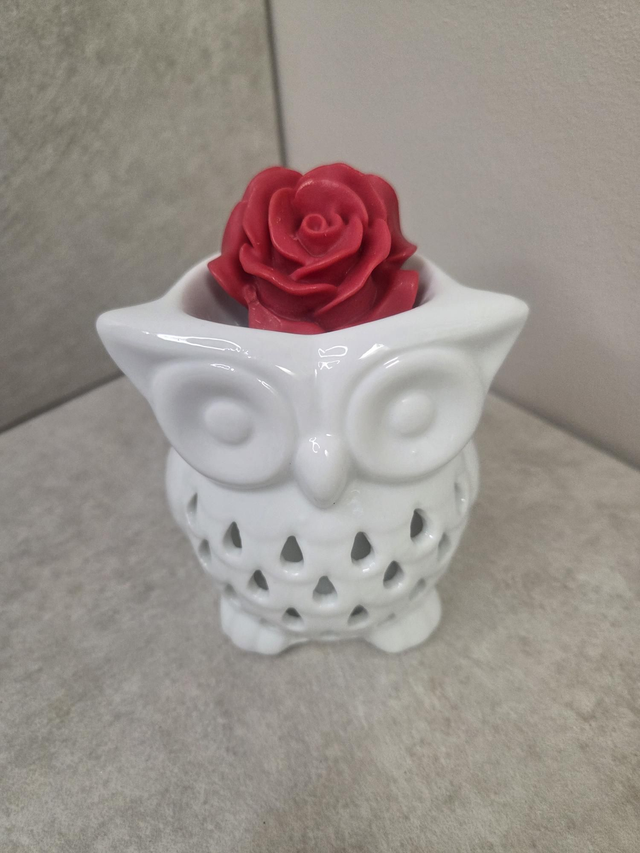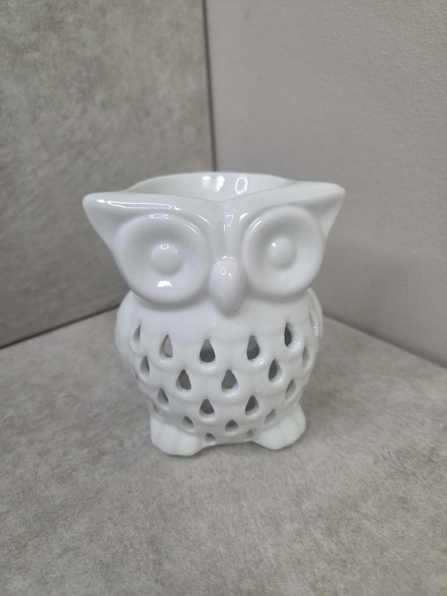hibou blanc, idéal pour apporter une touche douce et chaleureuse à votre intérieur. Lorsqu’une bougie chauffe-plat est allumée à l’intérieur, il diffuse une lumière délicate qui met en valeur son design apaisant et décoratif.