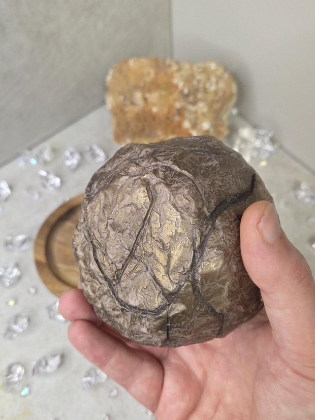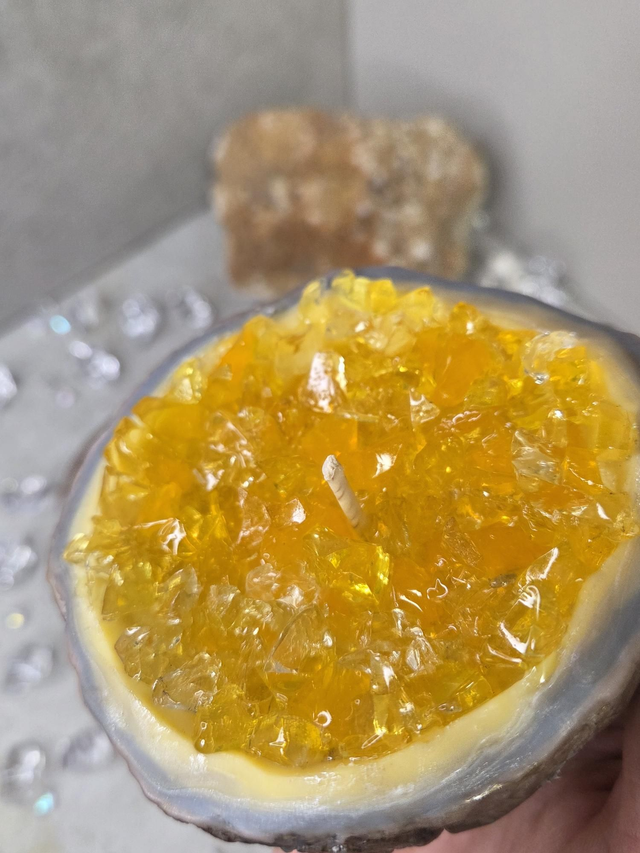 Bougie géode parfumée au musc et sculptée à la main. Sa forme ronde crée une illusion réaliste de géode naturelle : un relief cristallisé, lumineux et délicatement travaillé. Même sans être allumée, elle diffuse un parfum subtil qui parfume agréablement la pièce.