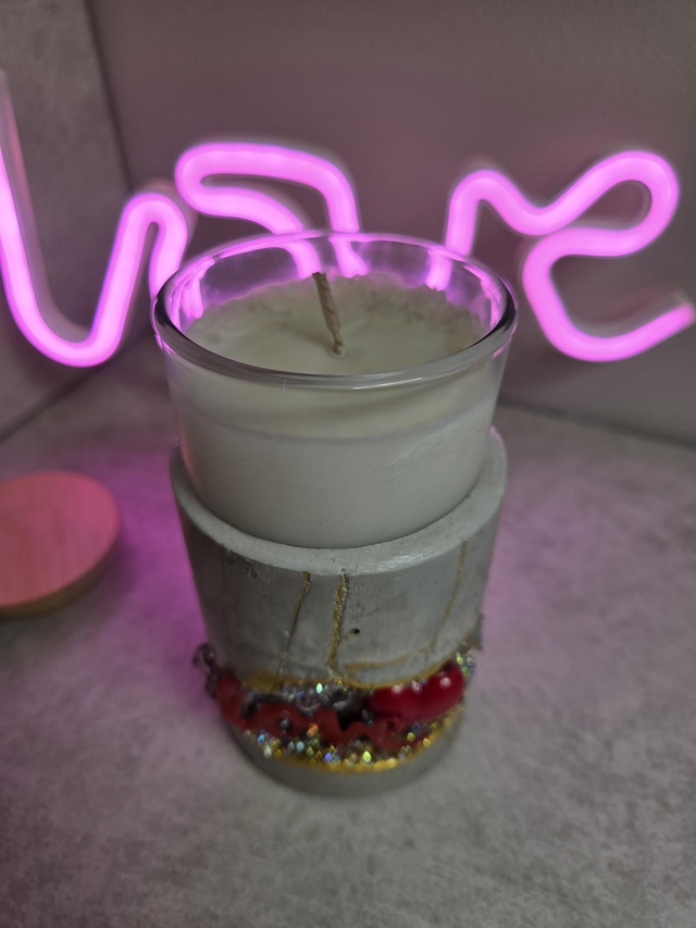 Ce photophore marie la force brute du béton et l’éclat du cristal. Sculpté et incrusté à la main, il diffuse une lumière douce tout en apportant une touche décorative et énergétique à votre intérieur.